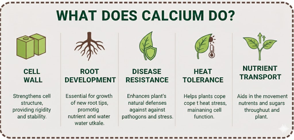 Shaqada ugu weyn! Waxay isku haysaa unugyada geedka. Calcium badan = Geed adag oo mirihiisu adag yihiin (Shelf life dheer).
