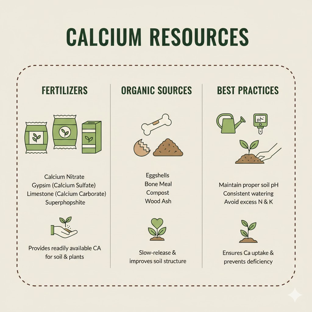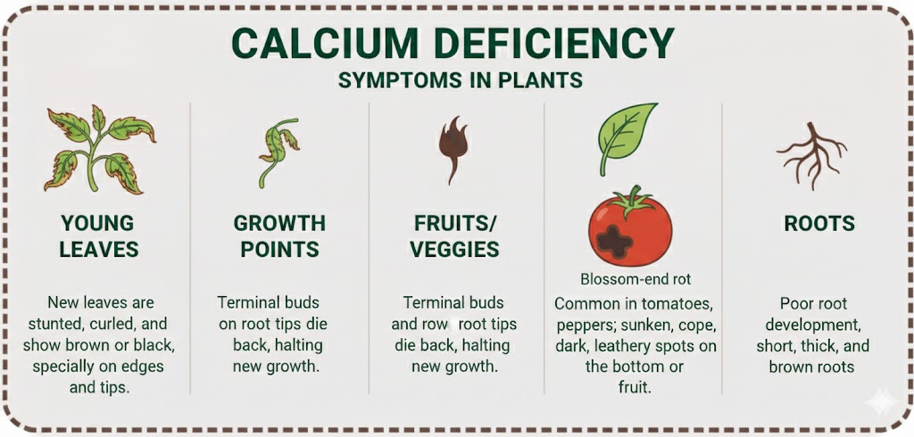 Qeybaha cusub ee xididka (Root tips) iyo caleemaha cusub waxay u baahan yihiin Calcium joogto ah si ay u fidaan.