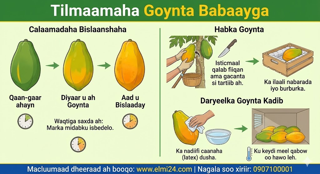 Marka midabka qolofta uu noqdo 25% Huruud (Yellow). Ha sugin inta uu wada bislaanayo geedka dushiisa haddii suuqu fog yahay.