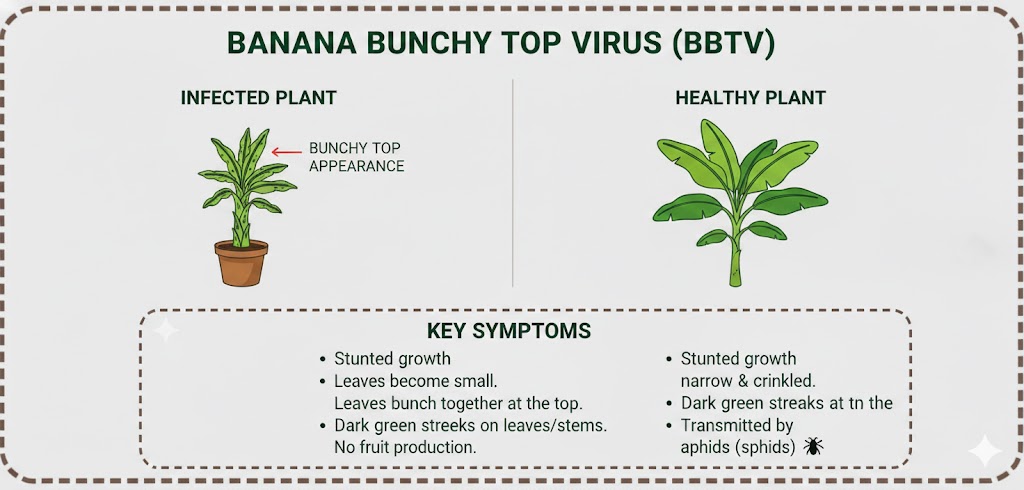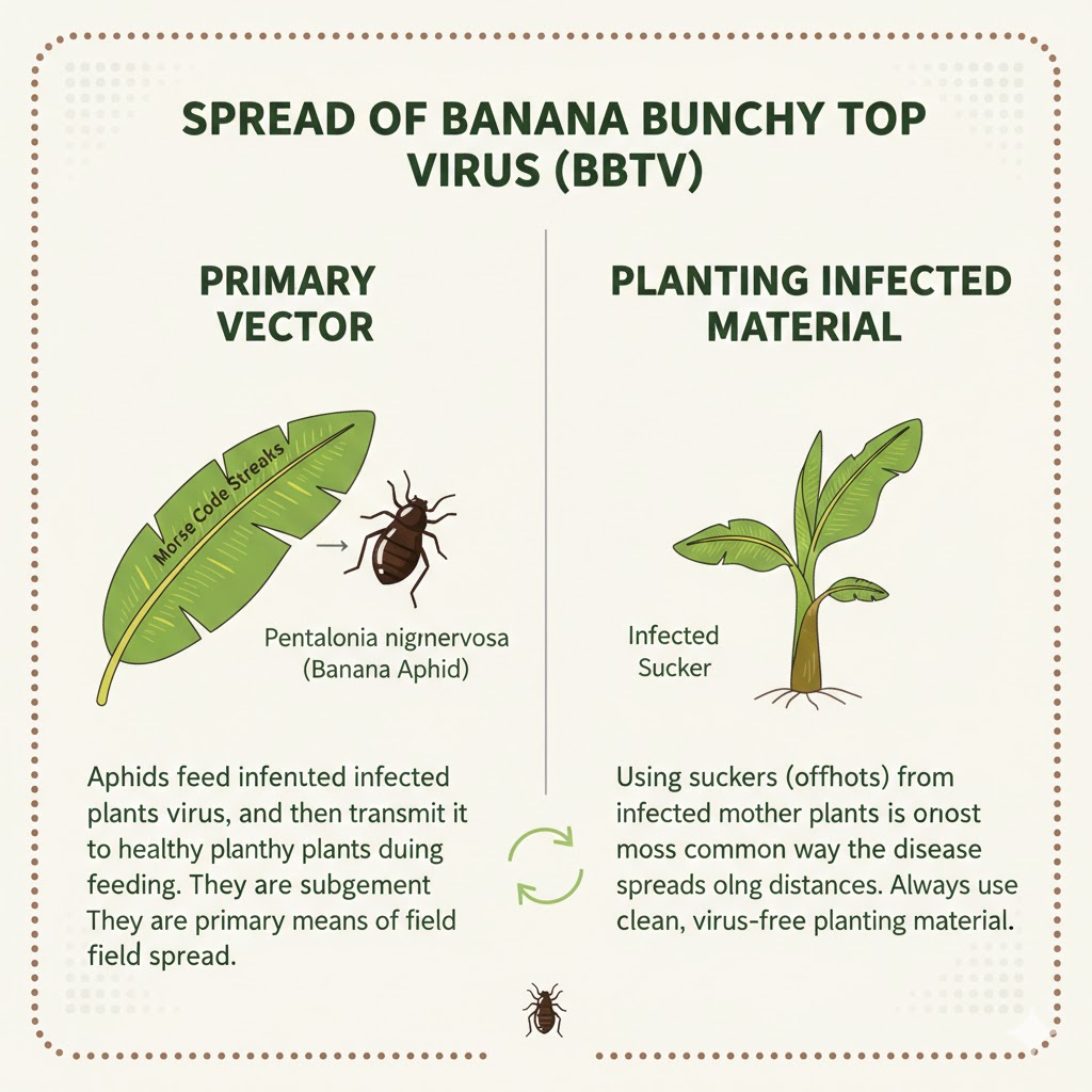 - **The Banana Aphid:** Cayayaanka loo yaqaan *Pentalonia nigronervosa* (Aphid-ka Mooska) ayaa ah kan ugu weyn ee fayraska qaada. Markii uu dhuuqo dheecaanka geed jirran, wuxuu u gudbiyaa kuwa kale.