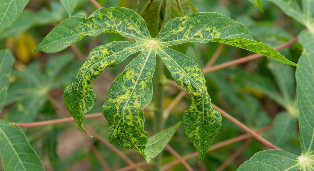 - **Chlorosis:** Nabaro jaalle ama cagaar khafiif ah oo ku faafa dusha are ee caleenta (Mosaic pattern).