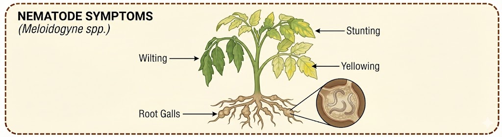 - **Root Galls (Barar):** Calaamadda ugu weyn ee *Root-knot Nematodes* waa xididdada oo yeesha buurbuur ama barar (knots).