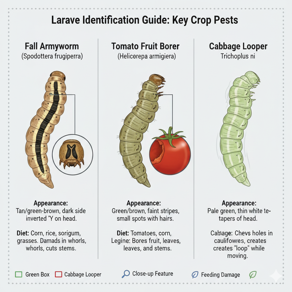 | Fall Armyworm | Galleyda, Masagada | Xarafka "Y" oo madaxa kaga yaal. |