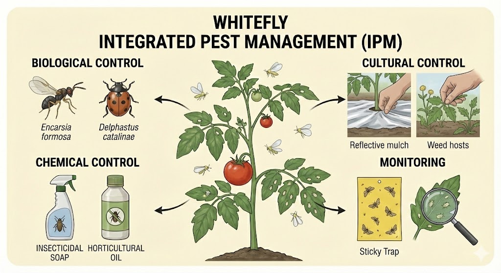 Xakamaynta Whitefly waxay u baahan tahay dulqaad iyo kormeer joogto ah. Ha sugin ilaa fayrasku ku faaho beerta. Ku bilow dabinada jaallaha ah iyo nadaafadda beerta si aad u hesho goosasho caafimaad qabta.
