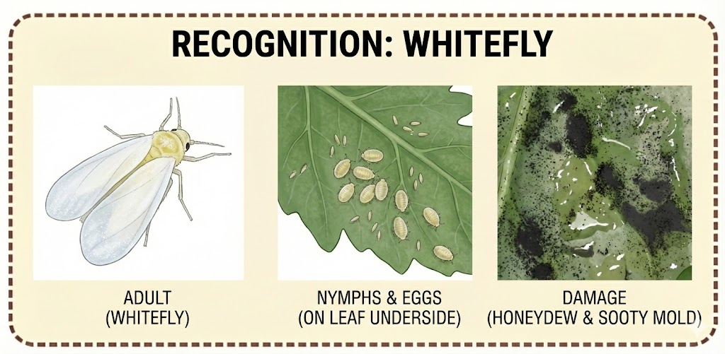 Whiteflies waxay aad u soo jiitaan midabka **Jaallaha ah (Yellow)**. Dhig dabinada dhegdhegga leh meel u dhow dhalada geedka si aad u aqoonsato tirada cayayaanka intaysan tarmin.