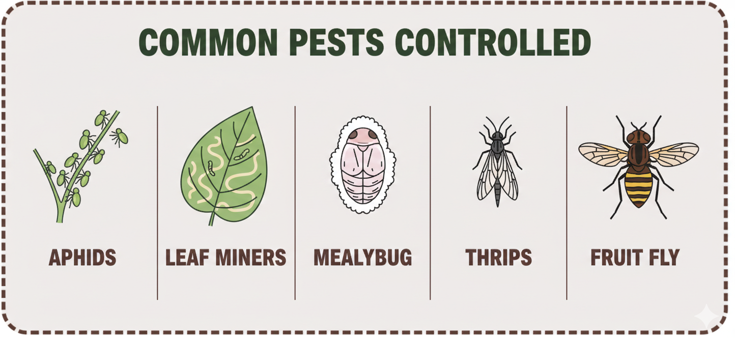 | Thrips & Mealybugs | Waxay gaartaa meelaha ay ku dhuuntaan |