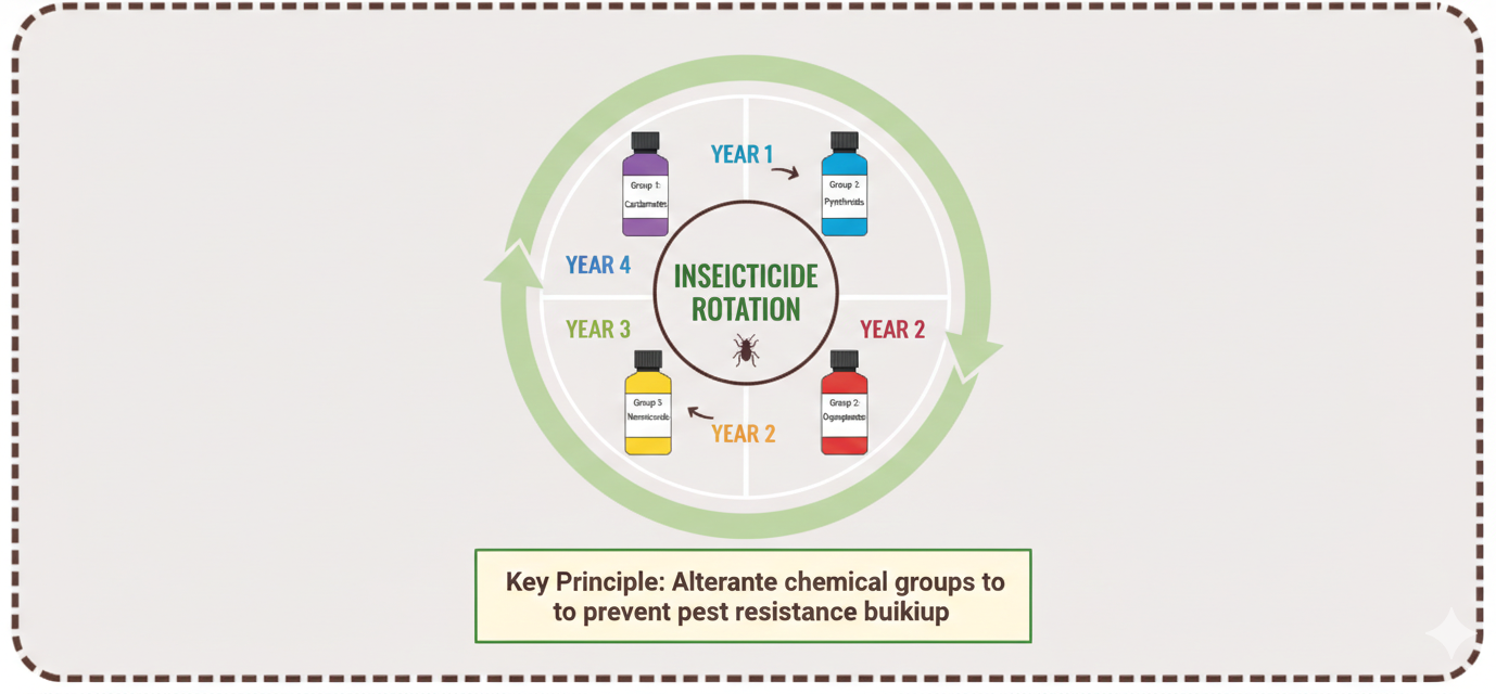 Maadaama ay tahay Organophosphate, cayayaanku si dhakhso ah ayuu u baran karaa. Ha isticmaalin wax ka badan 2 jeer hal xilli. Beddel oo isticmaal sunta kooxda Neonicotinoids (sida Acetamiprid) ama Pyrethroids.