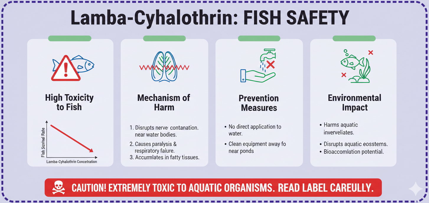 Khatar aad u weyn: Lambda-cyhalothrin waa sun aad u daran oo dila kalluunka iyo nolosha biyaha.