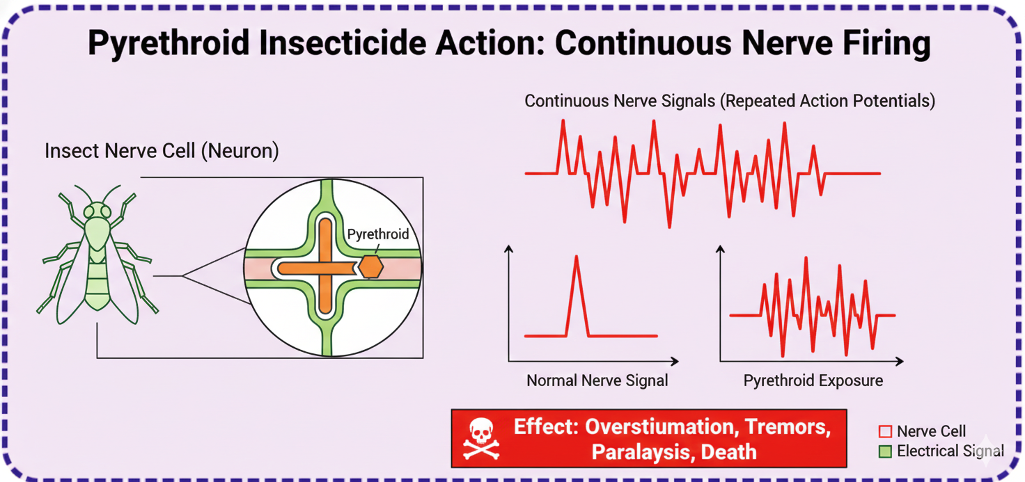 Lambda-cyhalothrin waxay beegsataa "Sodium Channels" ee ku jira unugyada dareenka.